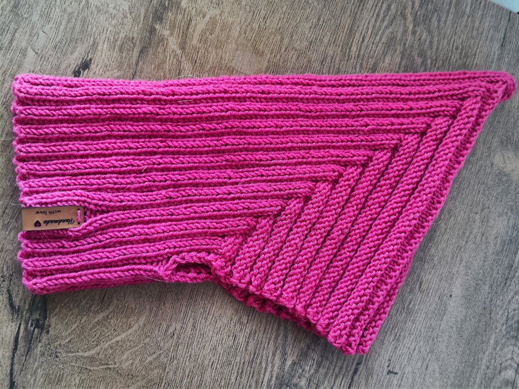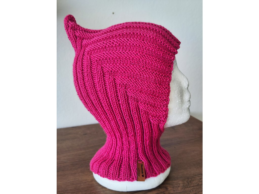 Kukla pletená pružným vzorem z hřejivé, nekousavé merino vlny v kombinaci s bavlnou.